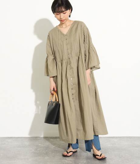 ピンタック前開きコットンロングワンピース ワンピース ドレス ロングワンピ Factor レディースファッション通販anapオンライン